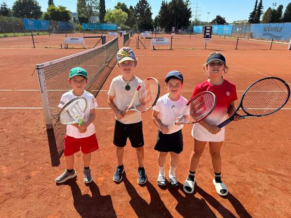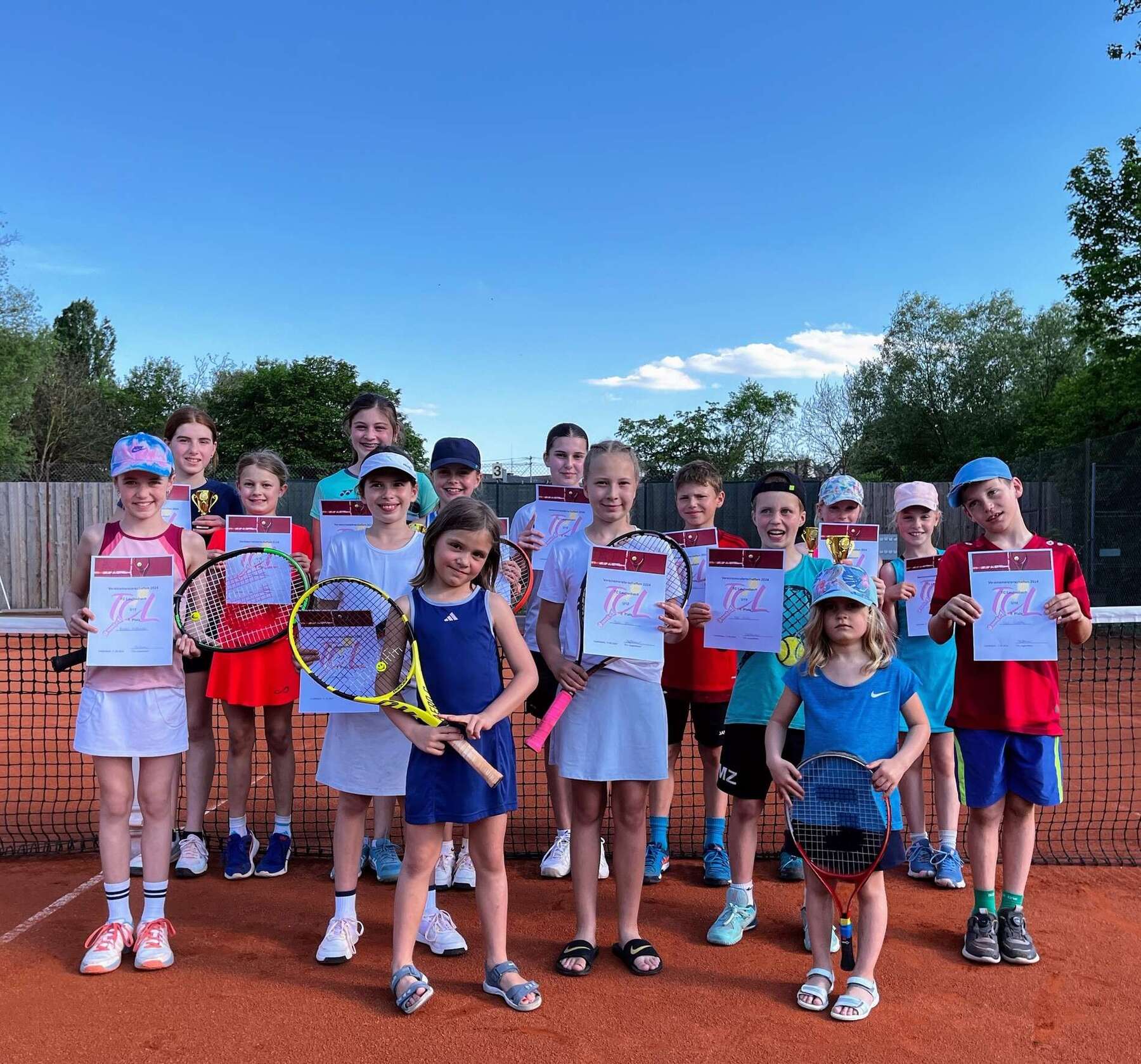 Bei bestem Wetter fanden am Samstag, 11.05.2024 unsere Jugendvereinsmeisterschaften statt. Viele hoch motivierte Kids nahmen verteilt auf verschiedene Altersklassen teil. Und wer „Ball-über-die Schnurr - Tennis“ erwartete, der hatte sich getäuscht: unsere Tenniskids haben riesen Fortschritte über den Winter gemacht, so dass wir mega Ballwechsel und richtig spannende Tennismatches zu sehen bekamen.Alle Kids waren mit Feuereifer dabei und hätten den Sieg verdient. Am Ende kann es aber nur einen Sieger pro Altersklasse geben. Wir gratulieren unseren neuen Vereinsmeistern:Amelie Arweiler (Mädchen U10), Mats Zanke (Jungen U10), Julie Kutschker (Juniorinnen U12), Ben Kutschker (Junioren U12) und Mathea Tözün (Juniorinnen U15)