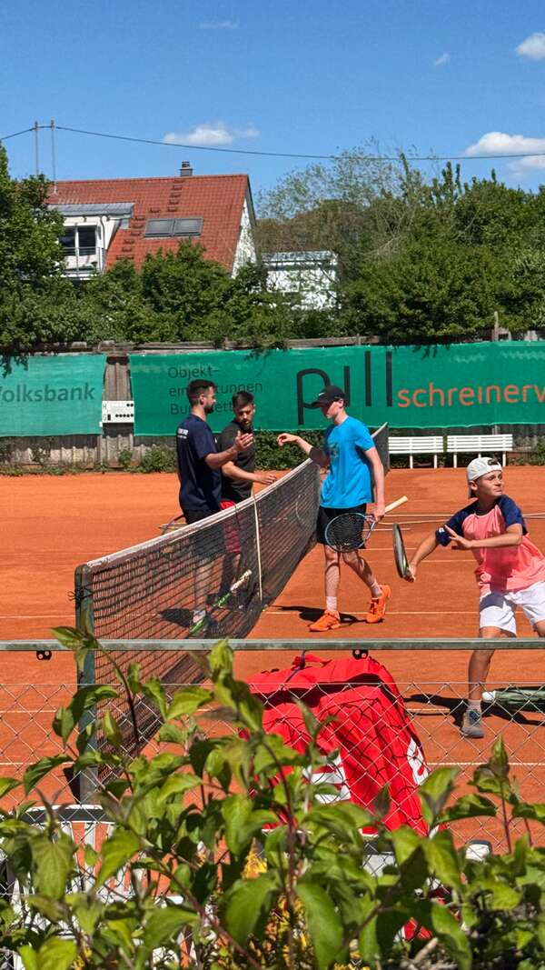 Unsere Jungs trafen auf richtig harte Brocken. Die Gegner waren stark, die Ballwechsel lang und der Puls hoch.Ein Einzel konnten wir für uns entscheiden. Leider ging ein Weiteres knapp im Match-Tie-Break verloren. In den Doppeln war dann leider nichts mehr zu holen. Es war trotz großer Fanunterstützung einfach nicht mehr drin.