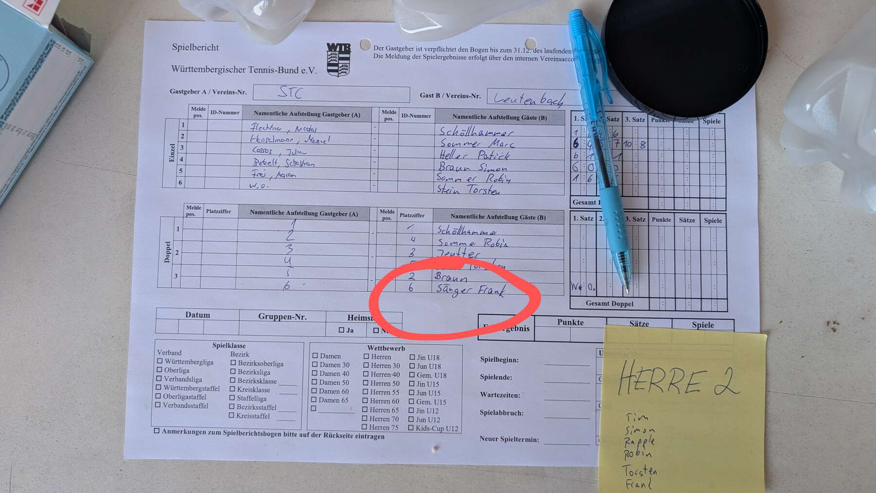 Um den Rest der Saison durchzuhalten schonten wir mit Marc einen unserer stärksten Doppelspieler.